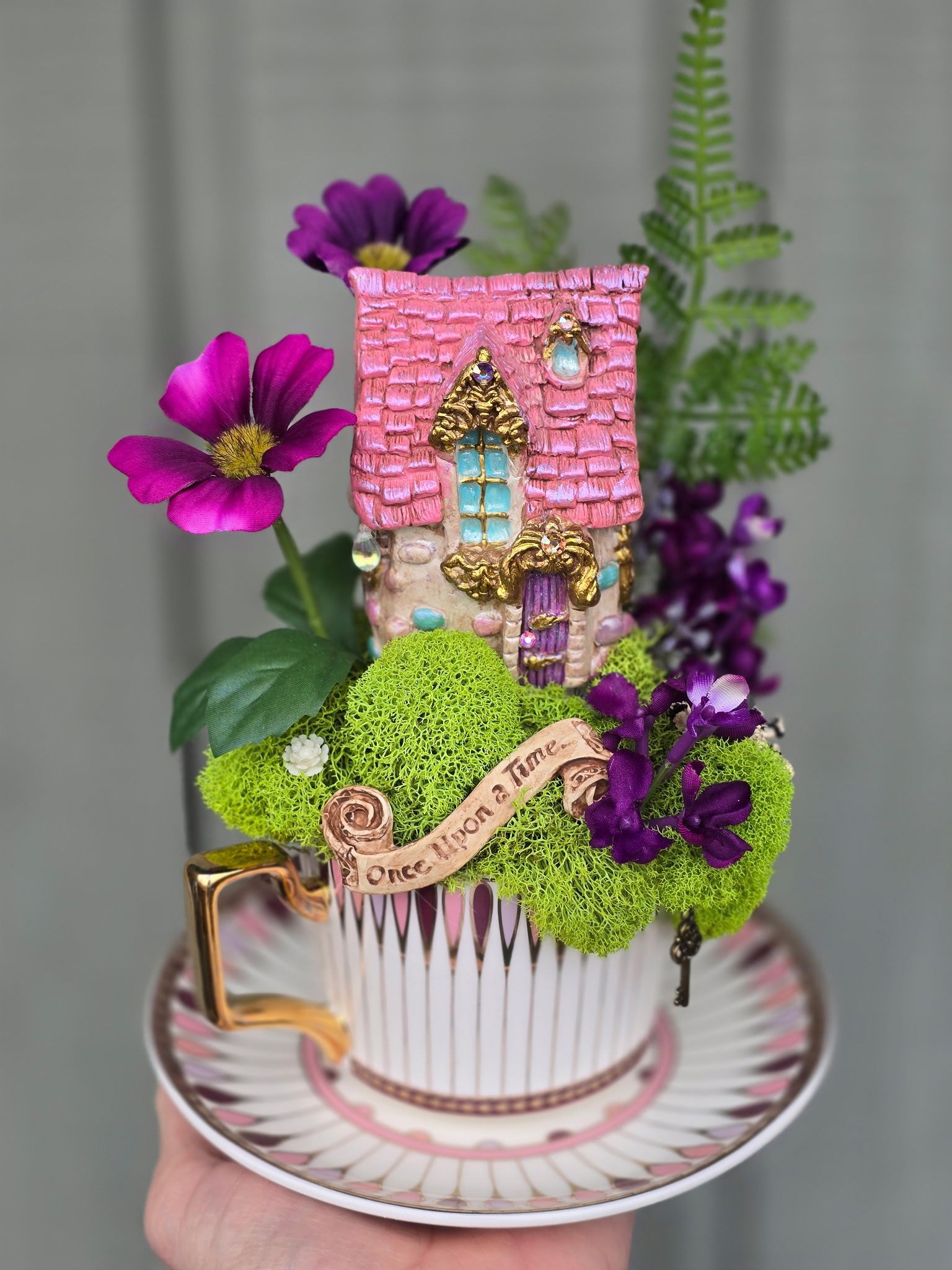 About: This class is suited for beginners who wish to learn a little bit about using acrylic paint & how to create a miniature, no-maintenance fairy garden! Come & make the perfect magical gift for someone you love (including yourself!) & spend some fun, quality time with us! Bring your favorite teacup, tea pot or coffee cup & choose your bisque clay fairy house (provided) to paint with acrylics! We will arrange a pretty little garden of mosses, flowers & little extras like crystals, tiny snail shells, etc., around the little house! If you have any special keepsake pieces you'd like to work into your creation, like a vintage hair pin from your beloved grandma, or those loose pearls from your mom's necklace that broke years ago... here's a special way to repurpose those treasures!
